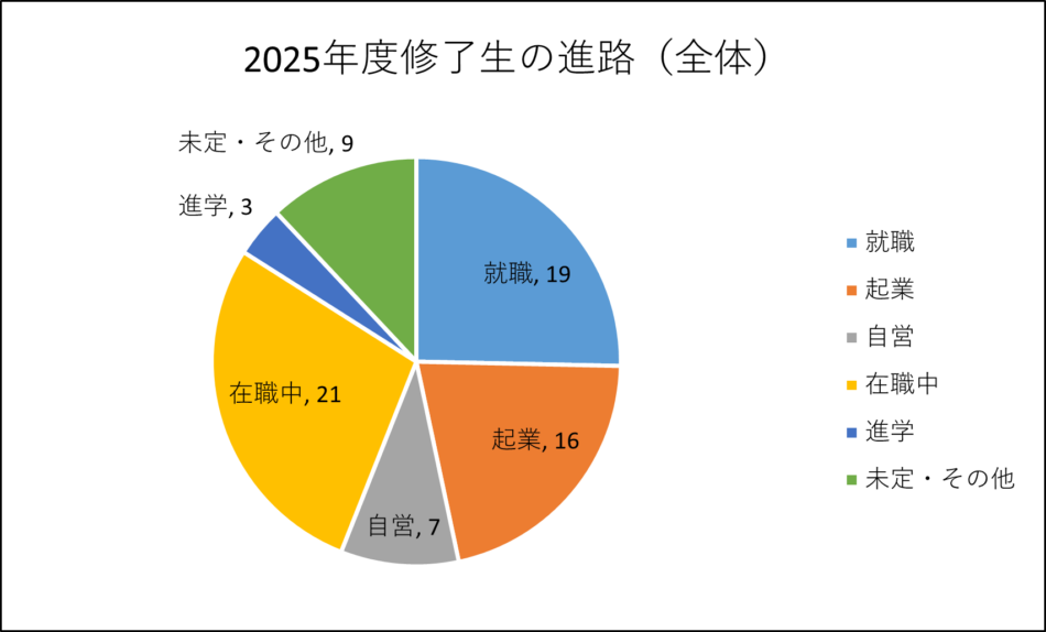 | 修了者 | 68名 | 64名 | 79名 | 77名 | 76名 |